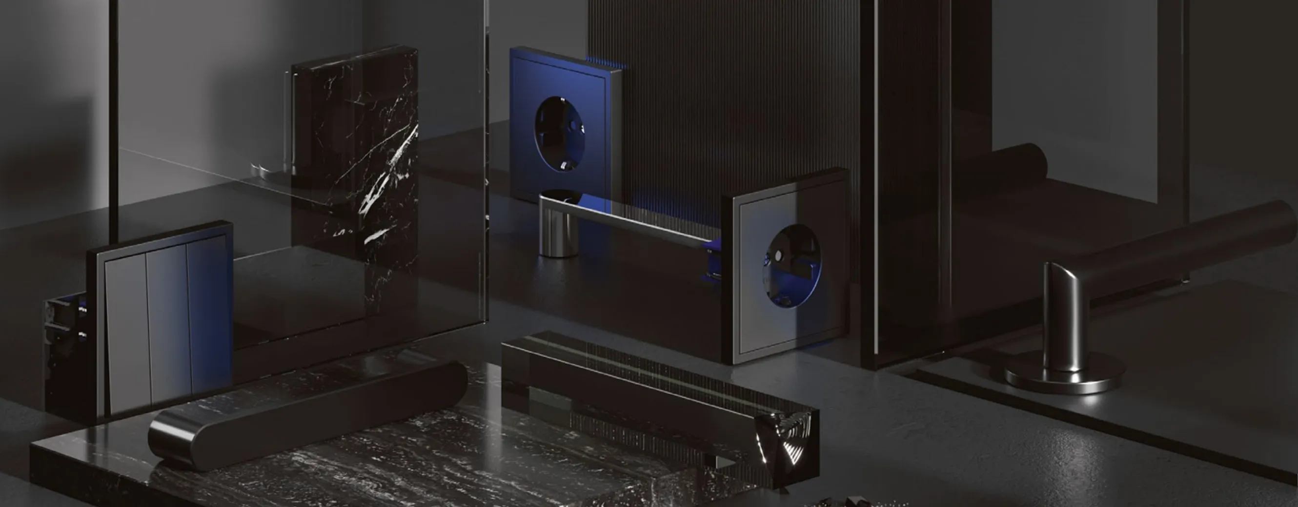Устройства управления комфортом черный матовый серии S70 — это решения для повседневного удобства в абсолютном глубоком чёрном цвете с матовой поверхностью, которая поглощает свет и исключает отражающие блики. Цвет черный матовый подчёркивает архитектурные линии, задаёт графичный ритм пространству и превращает функциональные элементы в дизайнерские акценты без излишней агрессии. Поворотнонажимной светорегулятор плавно управляет яркостью от 5 до 300 Вт, терморегулятор с дисплеем поддерживает комфортную температуру тёплого пола до 3500 Вт, а встраиваемая подсветка с датчиком движения обеспечивает безопасное освещение пути.