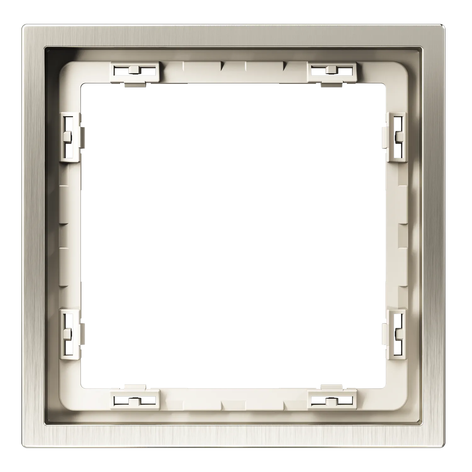 Рамка изготовлена методом точного литья цинкового сплава под давлением — это гарантирует идеальную геометрию без микротрещин и внутренних напряжений. Сверху нанесено многослойное гальваническое покрытие цвета «никель»: