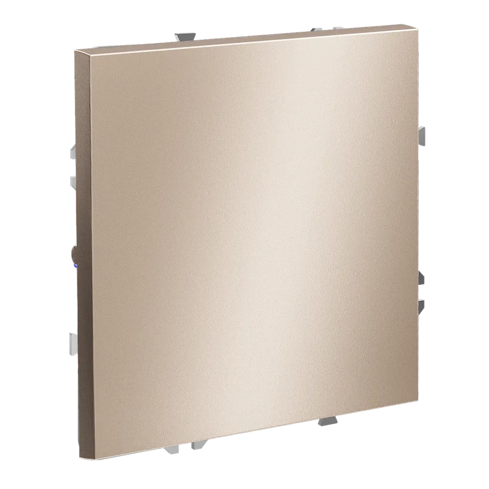 В отличие от холодных металлов, платина добавляет пространству тепла и глубины, не перетягивая на себя внимание. Выключатель становится естественным продолжением стены — тихим, но значимым элементом дизайнерского концепта.