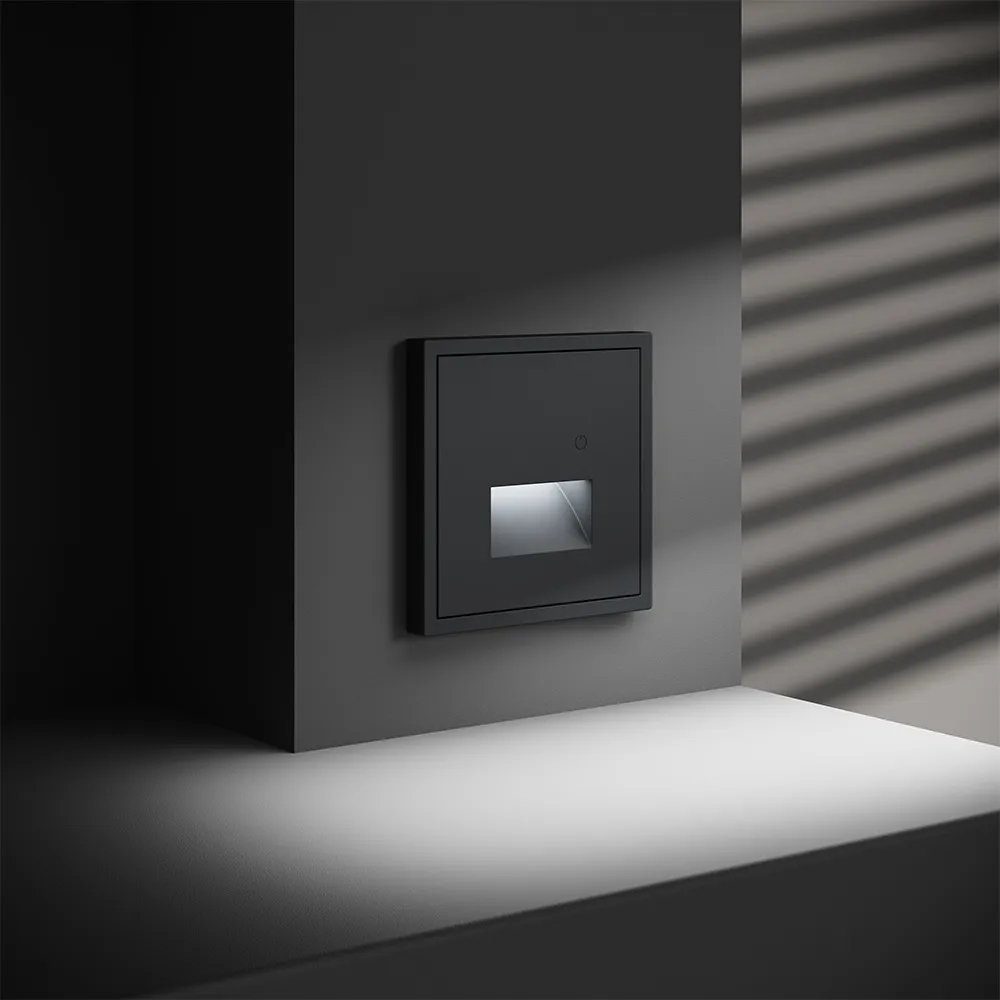 Подсветка устанавливается в стандартный подрозетник и совместима со всеми рамками серии S70 — пластиковыми и стеклянными, что позволяет интегрировать её в любую композицию на стене: рядом с выключателем, розеткой или терморегулятором.