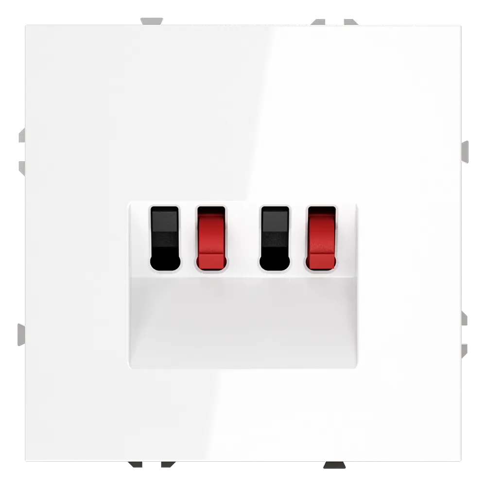 Благодаря встроенным разъёмам вы можете быстро и надёжно подключить до четырёх каналов акустики (например, фронтальные, тыловые колонки и сабвуфер), а при необходимости — так же легко отсоединить оборудование. Все акустические кабели скрыты внутри стены, что исключает путаницу и повышает безопасность.