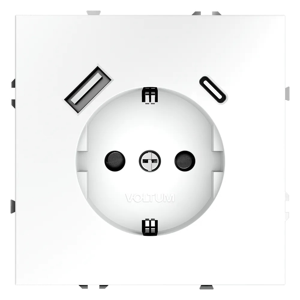 Розетка встраиваемая VOLTUM S70 с заземлением и защитными шторками 16А с USB А+С (белый матовый)