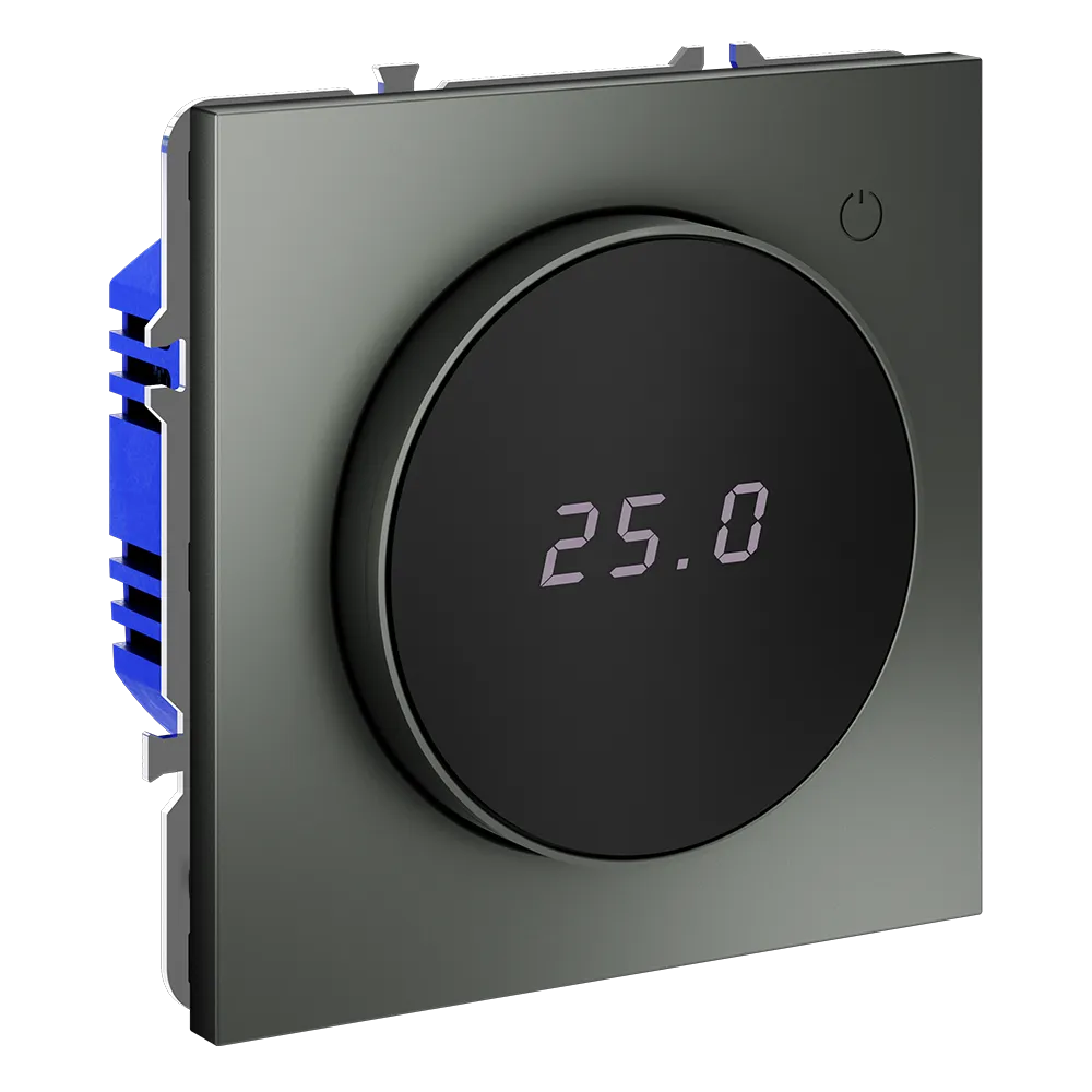 Место установки. Терморегуляторы Voltum предназначены для регулирования температуры электрического теплого пола. Актуальны как в городских квартирах, так и в загородных дачных домах без центрального отопления. Корпус. Дизайн терморегуляторов Voltum сочетается со стилем остальных электрических устройств компании. Они совместимы со всеми рамками. Материал внешних декоративных элементов — поликарбонат. Конструктивные особенности. Терморегуляторы работают с любыми типами теплых полов и рассчитаны на нагрузку до 3500 Вт. Устройства оснащены светодиодной индикацией режима и дисплеем, на котором отображается температура поверхности пола. Красный индикатор — «подача питания на нагревательный кабель (идет процесс нагрева)», отсутствие индикации — «заданная температура достигнута». В течение 15 минут после нагрева терморегулятор переходит в интеллектуальный «спящий режим», уменьшая яркость подсветки цифр и сокращая энергопотребление. Регулировка осуществляется вращением панели управления. Терморегулятор поставляется в комплекте с механизмом из пластиковой накладки и датчиком температуры.